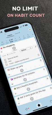 S HabitYou snadno osvojíte prospěšné návyky pro zdraví, produktivitu a duševní pohodu, a zároveň se efektivně zbavíte těch, které vám brání v rozkvětu. Ať už toužíte zlepšit svou fyzickou kondici sledováním pitného režimu či cvičení, překonat závislosti jako je kouření nebo alkohol, pěstovat všímavost skrze meditaci a jógu, rozvíjet nové zájmy, posílit společenské vazby, zvládat domácí úkoly nebo naplánovat kariérní postup – HabitYou nabízí komplexní nástroje pro každý aspekt vašeho života. Intuitivní deník, seznamy úkolů a flexibilní plánovač aktivit zajistí, že si své cíle udržíte vždy na očích, s možností přidávat poznámky a obrázky pro bohatší záznam.