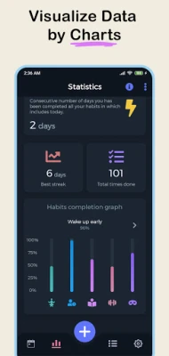 Habit360 vám pomůže vytvářet a udržovat dobré návyky, eliminovat ty špatné a dosáhnout vašich dlouhodobých cílů. Díky jednoduchým a přehledným grafům a statistikám bude sledování vašeho pokroku naprosto snadné.