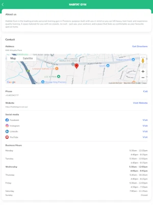 Habitat Gym je více než jen tréninkové centrum; je to partner na vaší cestě k osobnímu maximu. Prostřednictvím aplikace můžete detailně prozkoumat naši širokou nabídku programů a služeb, které jsou pečlivě navrženy tak, aby podporovaly zaneprázdněné profesionály v dosahování špičkových výsledků. Specializujeme se na poskytování individuálně přizpůsobených tréninků a odborného vedení, které vám pomůže znovu získat kontrolu nad vaším zdravím a vitalitou. Od flexibilního plánování až po hluboké porozumění vaší kondici, aplikace je vaším spolehlivým průvodcem.