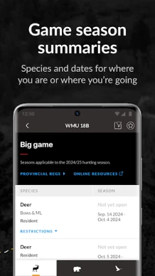Zaznamenejte si důležité body zájmu pouhým klepnutím na mapu, aktuální polohou nebo zadáním GPS souřadnic. Aplikace iHunter vám pomůže s precizním plánováním díky integrované kalkulačce východu a západu slunce, která určí legální dobu lovu pro vaši pozici, a to vše funguje offline. Prohlédněte si hranice rezervací Prvních národů a importujte vlastní data z GPX, KML nebo KMZ souborů. Přihlaste se pro zálohování a synchronizaci vašich bodů zájmu a nastavení napříč všemi vašimi zařízeními. Pro spojení s ostatními můžete sdílet svou aktuální polohu e-mailem nebo zprávou (vyžaduje internet), nebo si zobrazit aktuální počasí na vaší pozici či u bodu zájmu.