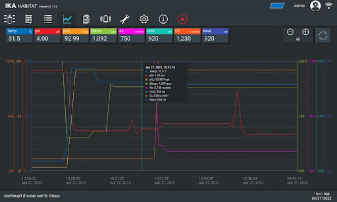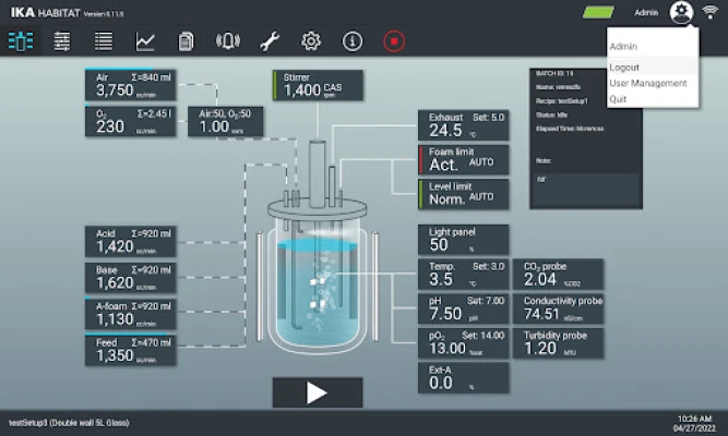 Pro maximální využití potenciálu vašeho laboratorního nastavení je tu aplikace IKA HABITAT research. Tato intuitivní digitální platforma vám umožňuje snadno sledovat a precizně řídit veškeré bioprocesní experimenty, které provádíte se systémy IKA Habitat. Díky ní máte klíčové parametry pod kontrolou odkudkoli a kdykoli. Získejte přehled o teplotě, pH, rozpuštěném kyslíku a dalších metrikách v reálném čase, a provádějte okamžité úpravy pro dosažení optimálních výsledků. Zjednodušte komplexní protokoly a zajistěte konzistentnost a reprodukovatelnost vašich dat s bezkonkurenční lehkostí.