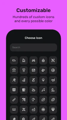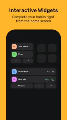 Mějte své cíle vždy na očích a dosah ruky díky interaktivním widgetům, které vám umožní sledovat a dokončovat úkoly přímo z domovské obrazovky – je to rychlé a neuvěřitelně intuitivní. Udržujte si pořádek a jasné zaměření s Kolekcemi, které vám dovolí seskupovat návyky do kategorií jako "Ranní rituály", "Večerní relax" nebo jakékoli vlastní téma, které se pak promítne jako filtr ve vašem seznamu. Každý návyk si můžete plně přizpůsobit s výběrem z více než 550 ikon a nekonečné palety barev, aby odrážel vaši osobnost a styl.