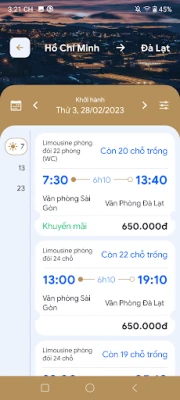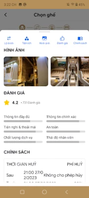 Objevte detailní informace o dostupných trasách, časech odjezdů a přesných místech nástupu či výstupu, vše přehledně zobrazeno v reálném čase. S Nhà xe Long Vân Limousine je rezervace jízdenek otázkou několika klepnutí. Jednoduše si vyberte požadovanou trasu, zvolte si své preferované sedadlo z interaktivního plánu vozu a potvrďte svou rezervaci – kdykoli a odkudkoli. Už žádné starosti s hledáním volných míst nebo čekáním v řadě; vaše ideální cesta je vzdálená jen pár kliknutí.